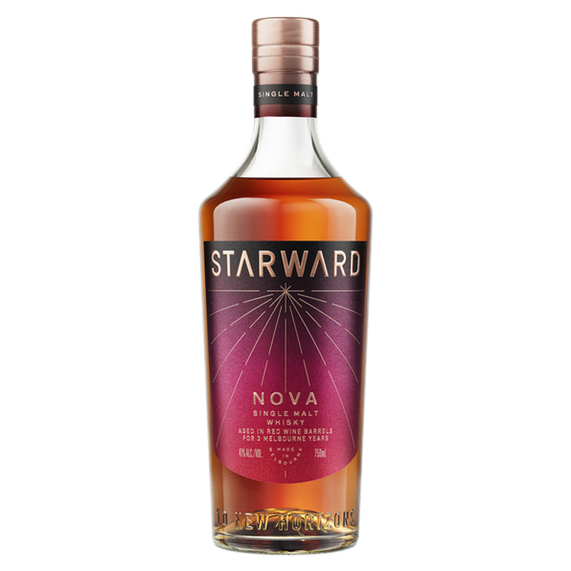 Bursting with notes of red berries, chocolate and soft oak spice, Nova is Starward's fruit-forward, signature single malt whisky. Fully matured in Australian red wine barrels to make it one of our most popular whiskies amongst whisky lovers, cocktail curious and competition judges alike.
