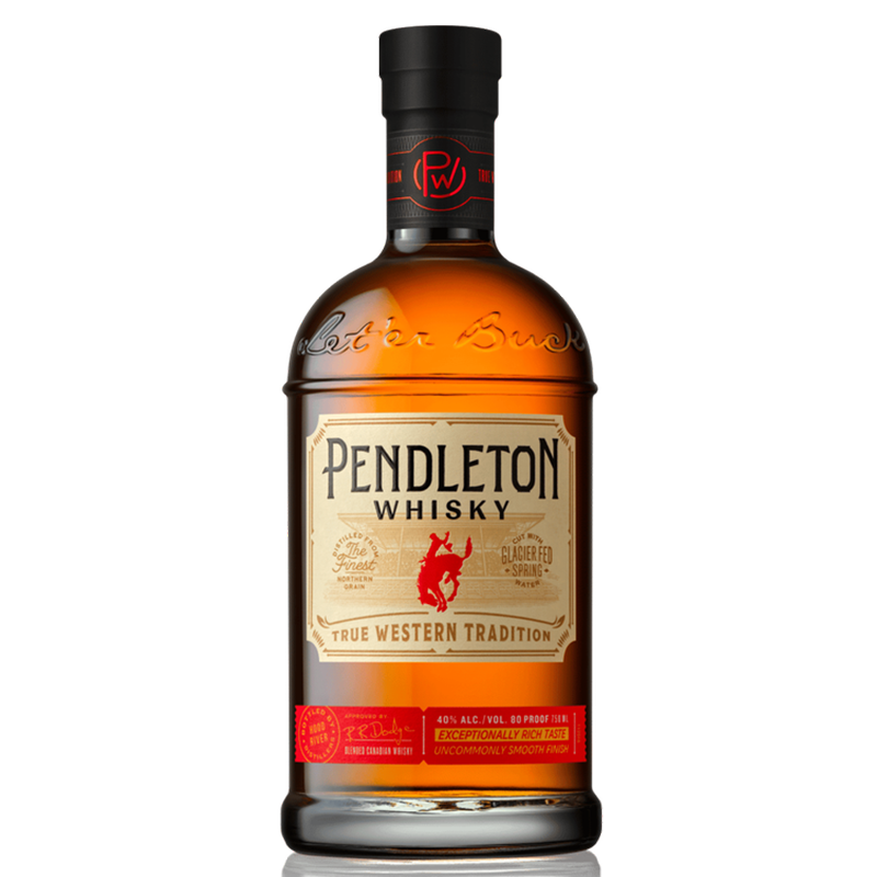 Pendleton® Whisky is an oak barrel-aged whisky distilled in Canada using the finest ingredients. Before bottling, glacier-fed spring water is added from Mt. Hood (Oregon's highest peak). Pendleton® Whisky delivers an uncommonly smooth taste and rich, complex flavor. Pendleton® Whisky was specifically created to celebrate the bold spirit of independence and hard-work ethic of the American cowboy and cowgirl. Each Pendleton® Whisky bottle prominently features the rodeo's famous bucking horse symbol and Let’er Buck slogan.