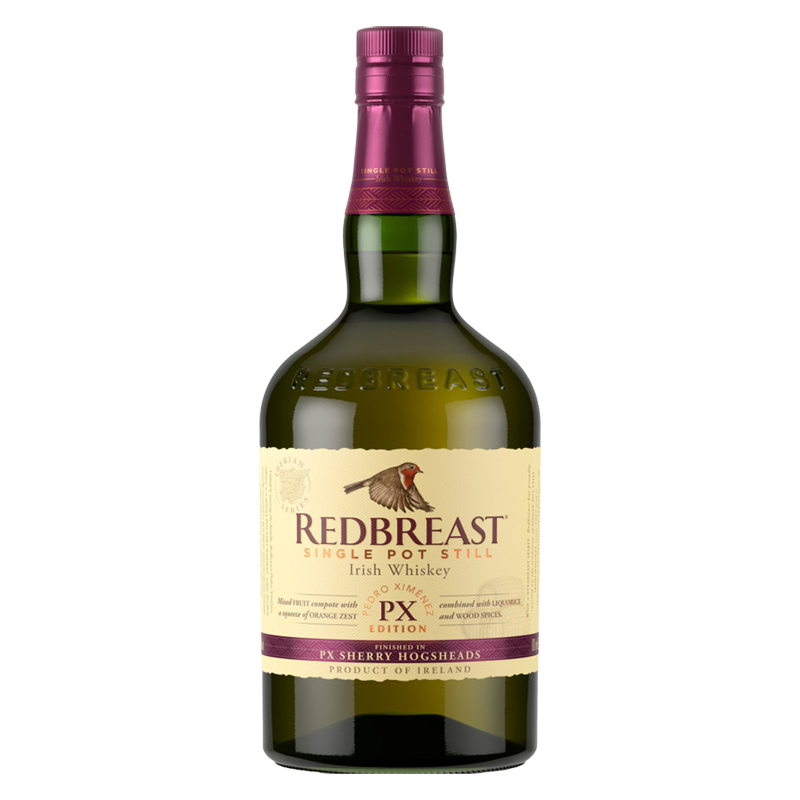Redbreast Pedro Ximenéz (PX) Edition, the highly acclaimed inaugural release of the Redbreast Iberian Series, is now a permanent addition to the Redbreast portfolio! The Iberian Series adds a new and exciting chapter to the Redbreast Family story with whiskeys finished in casks sourced from the sun-drenched bodegas of Spain and Portugal, suffused with the natural warmth and sweetness of the Iberian peninsula. Unique among the family, Redbreast Pedro Ximénez Edition is a Single Pot Still Whiskey, tripled distilled, initially matured in Bourbon and Oloroso Sherry casks before being re-casked in delectable Pedro Ximénez Hogsheads from the southern tip of Spain, for a sweet finish.