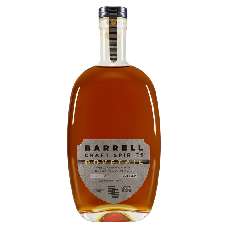 Barrell Craft Spirits Gray Label Dovetail Cask Strength is an elevated evolution of the beloved Dovetail series. A luxurious blend of American whiskies finished in rum, port, and Dunn Vineyards Cabernet casks. Bottled at a commanding 131.54 proof, this Gray Label edition represents the pinnacle of blending artistry, offering remarkable depth, power, and balance.