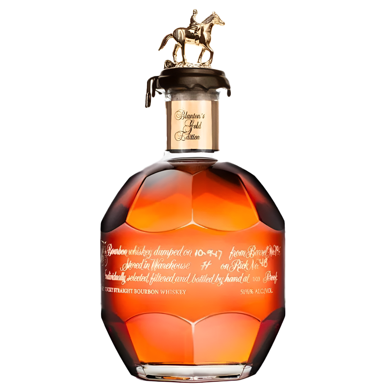 Blanton's Gold Edition was created for discerning bourbon aficionados who appreciate exceptional smoothness and complexity in their bourbon whiskey. The nose is first marked by spicy rye and tobacco notes. Caramel and honey follow soon after, mingled with dark fruit and citrus notes. The palate emulates the same complex nose with rye, tobacco, and honey at the forefront. Round and bold notes of charred oak and vanilla carry you through to an extremely long and harmonious finish. This bourbon consistently delivers on balance and character, on par with the world's finest whiskey. Best served neat or with a splash of water. Bottled at 51.5% alcohol by volume.