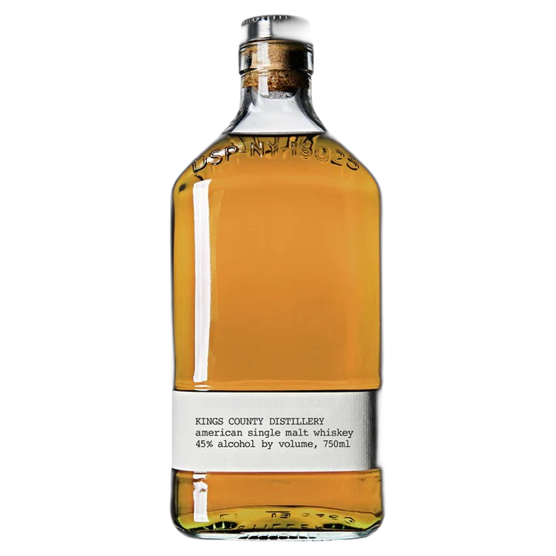In Scotland, “Single Malt Whiskey” refers to whiskey made from 100% malted barley at a single distillery, among several other rules and constraints. Due in large part to the commercial successes of several internationally distributed blended scotch brands, single malts became coveted and a highly emulated style of world whiskey. American Single Malt is a new, federally recognized style of whiskey, and we are honored to be a part of the story as advocates and distillers. This newly recognized American version allows aging in oak casks of up to 700 liters, charred or not, used or new, allowing for a wide latitude of flavors within the category. Kings County has always leaned toward the traditional within the emergent category, twice distilled in traditional Scottish pot stills and aging in our own used bourbon cooperage. For this, the 9th release of a single malt whiskey from Kings County and the first to bear the American Single Malt designation, the blend is comprised of 25 total 15-gallon ex-bourbon barrels, 9 made with Eerie Pale Ale New York Craft malt and others made with a combination of Golden Promise and Chariot Peated malt. Aged between 3 and 6 years, this batch compares to lighter highland malts and Japanese whiskeys, with a broadly recognizable profile of tropical fruits, toasted oak, honey, and vanilla, and sweet smoke offering a testament to the expansive ambitions of the category. Balanced and sophisticated, it is an elegant whiskey and an important entry into any collection of early American Single Malts.