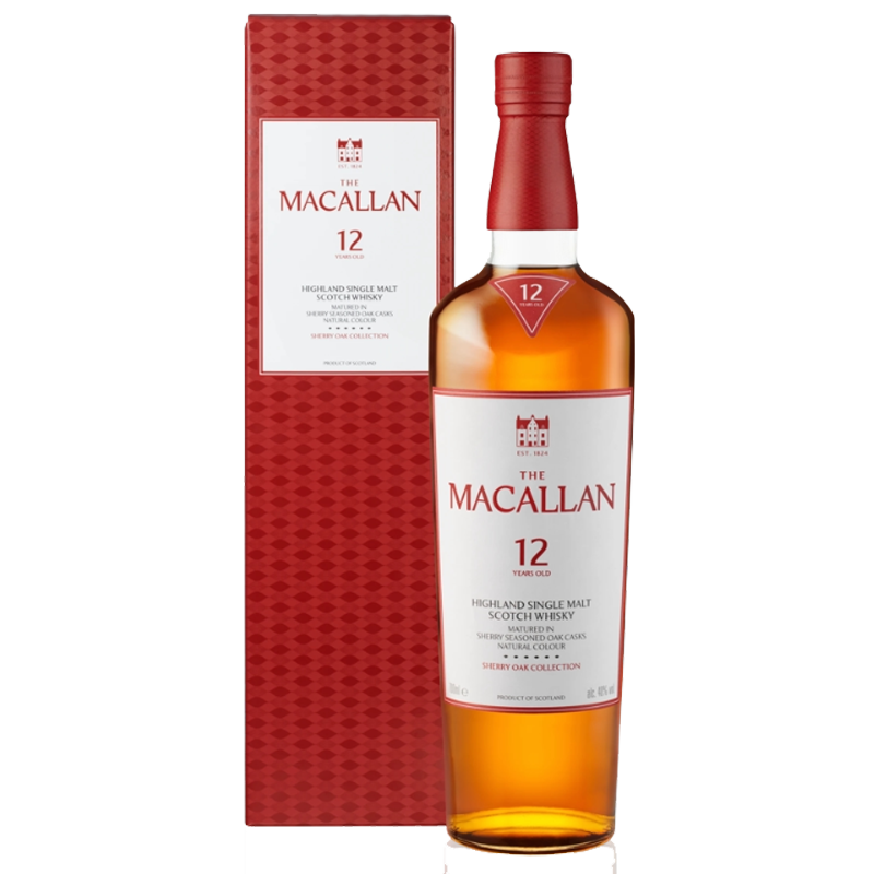 Matured for a minimum of 12 years on The Macallan Estate in the heart of Speyside, The Macallan Sherry Oak 12 Years Old is revered as the classic example of The Macallan and the influence of sherry seasoned European oak casks.